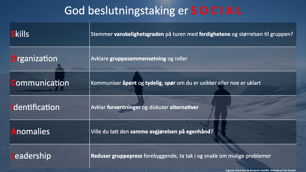Men så står du der, på turen, med skiene på. Du er usikker. Teorien er plutselig ikke like klar. Kartet ser annerledes ut i virkeligheten. Gruppa er utålmodig. Snøen ser perfekt og meget fristende ut.